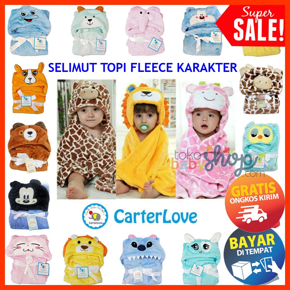 Kelebihan - Kelebihan membeli PILIH MOTIF !!! Selimut Bayi Motif Boy Girl Animal Carter / Selimut Topi Fleece Karakter STF COD di Toko ini