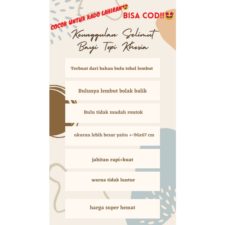 - Produk ini tidak sedang Flash Sale, tidak semua Seller suka Flash Sale, saya rasa ini bukan kekurangan, Jika Anda anggap Harga Rp. 51.500,00 itu murah untuk Jadikan Selimut Bayi Topi Double Fleece Tebal Khesia Sebagai Perlengkapan Bayi Bunda,Dijamin Hangat ya ambil saja